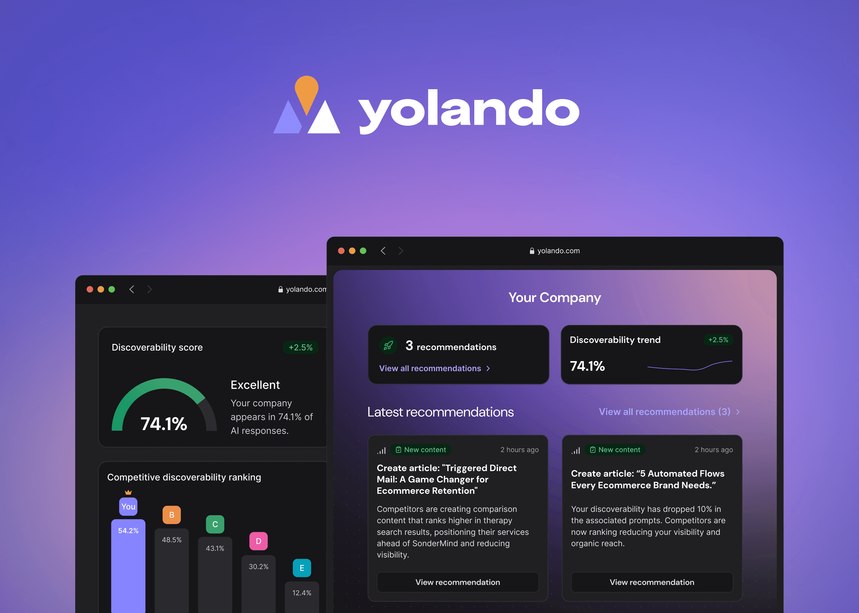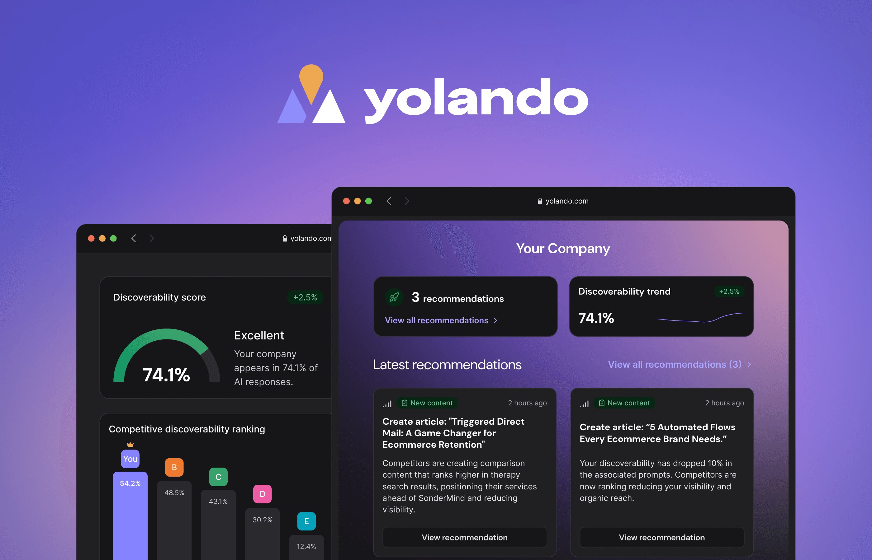 Get found, cited and recommended by AI. Yolando helps your brand show up and win in AI-powered search.